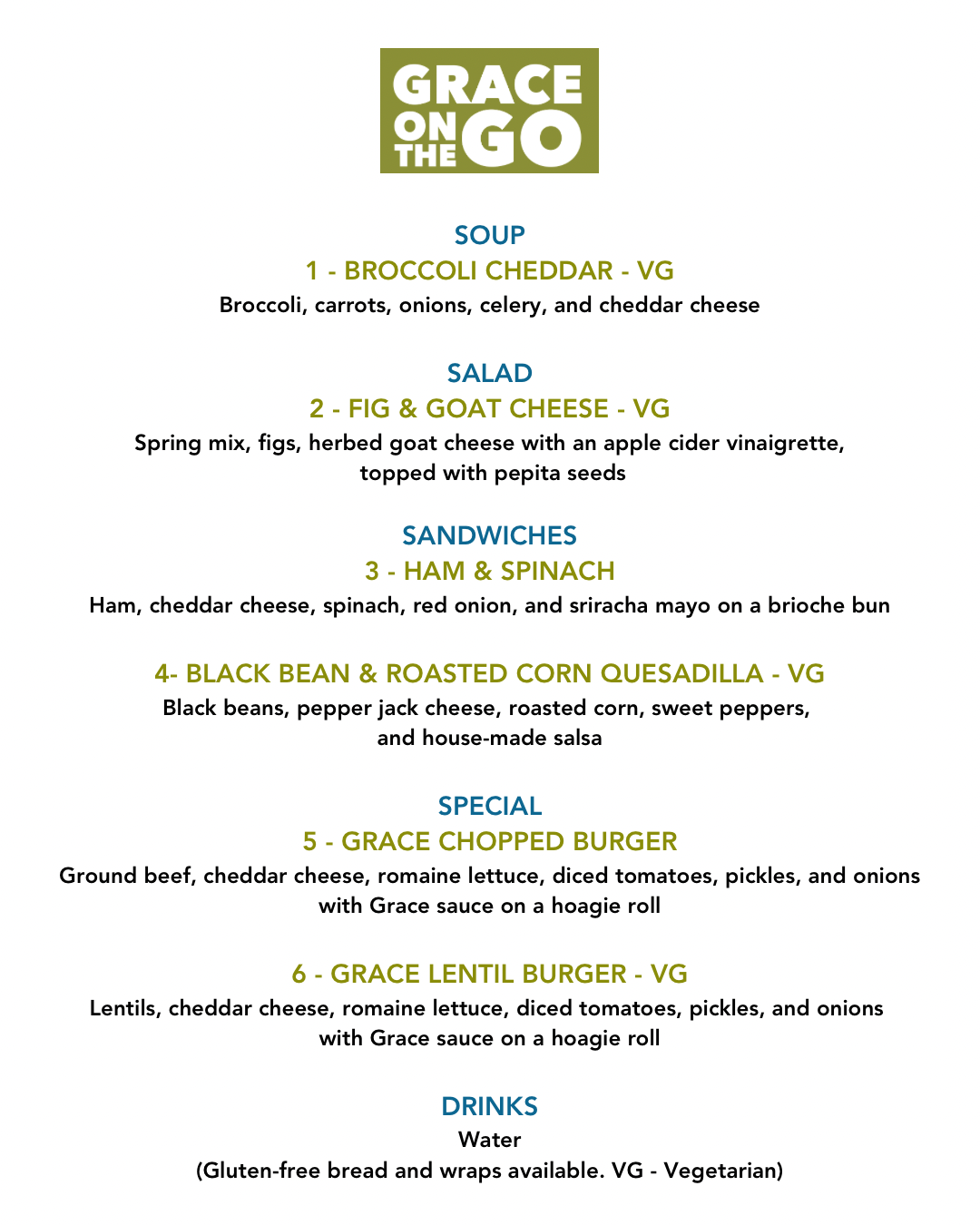 Today, we are at Constitution Square between 11:30 - 1:30. Turkey Rueben is the special! Check out the menu below. #graceonthego #everybodyeats