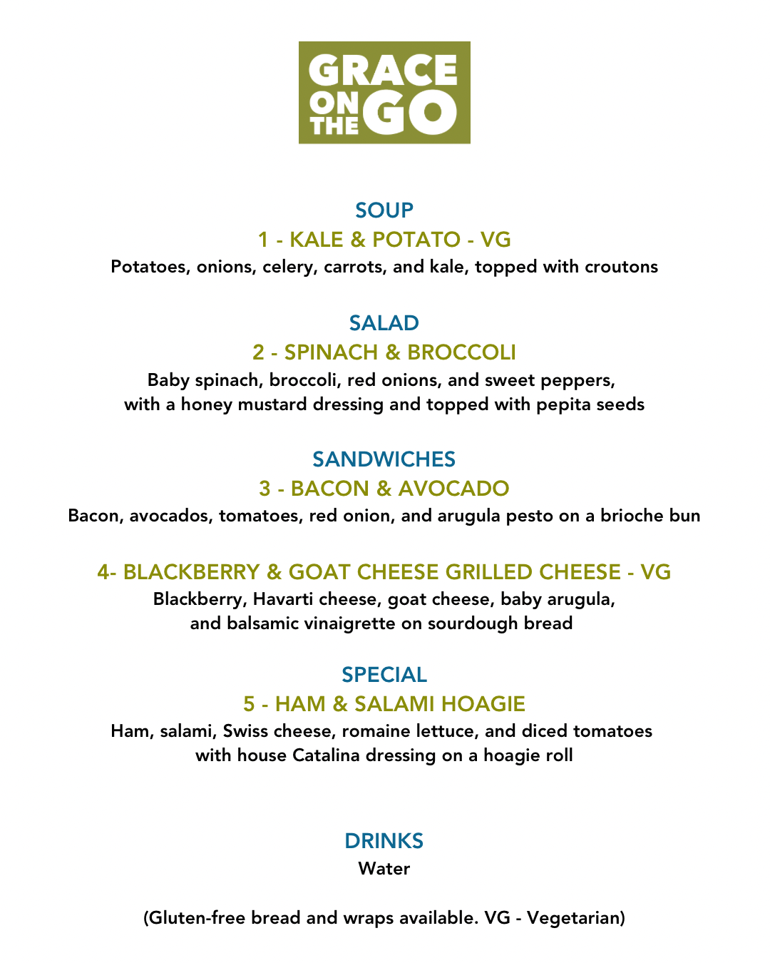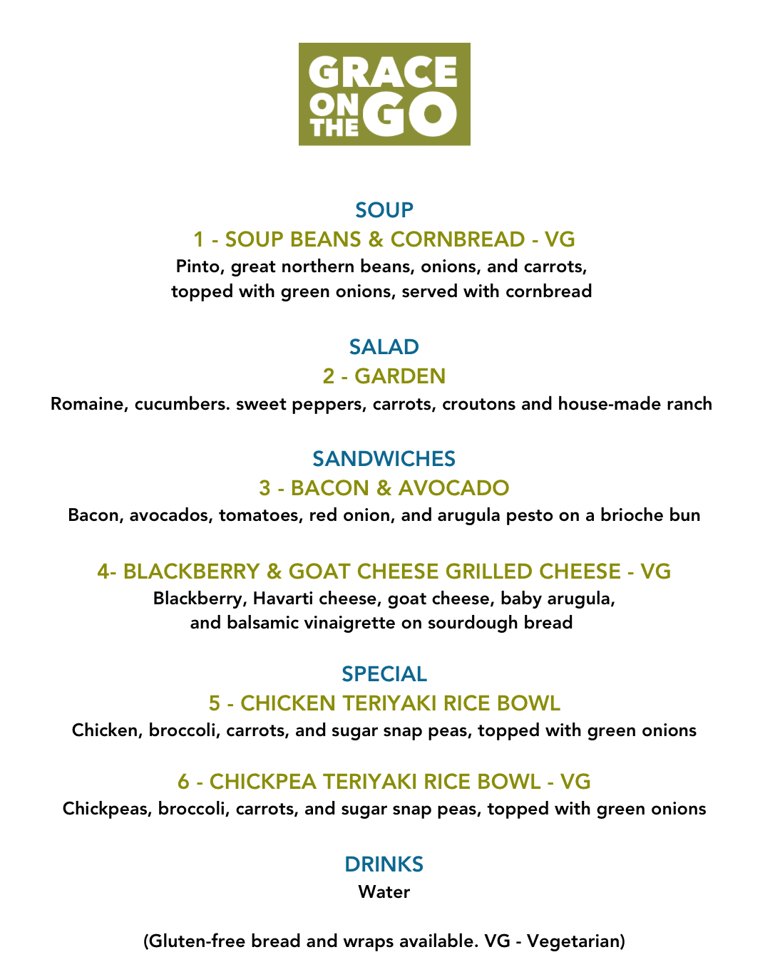 We have some new specials on the menu today. Check them out below! We are at the 4th Street Food Truck lot today from 11 :30 - 1:30. #graceonthego #paywhatyoucan