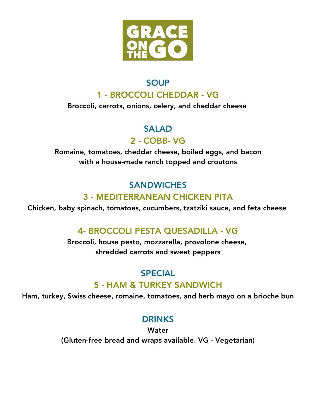 ☀️ Join us for lunch today at Michael Smith Park (JE Woods Drive) from 11:30 -1:30. It’s a great day to eat outside! ☀️ Check out our yummy menu! #graceonthego #everybodyeats